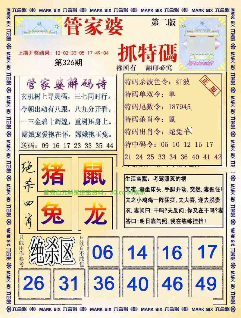 | 328期:绝杀三肖【兔-羊-虎】开:發00准 |